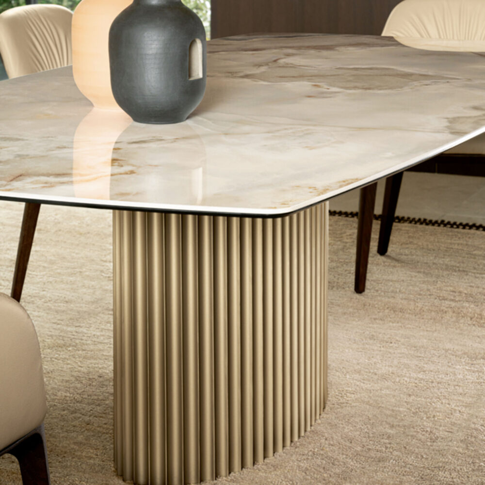 Tavolo Atlantis Riflessi con piano in ceramica allungabile .