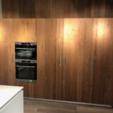 Offerta cucina Veneta Cucine modello Lounge ante finitura Fenix e legno noce nodoso , piano top ceramica Caranto , completa di elettrodomestici Aeg , schienale in acciaio inox , prezzo di listino € 31.946,00 sconto OUTLET 50% € 15.973,00 iva trasporto e montaggio compreso in Torino e cintura .