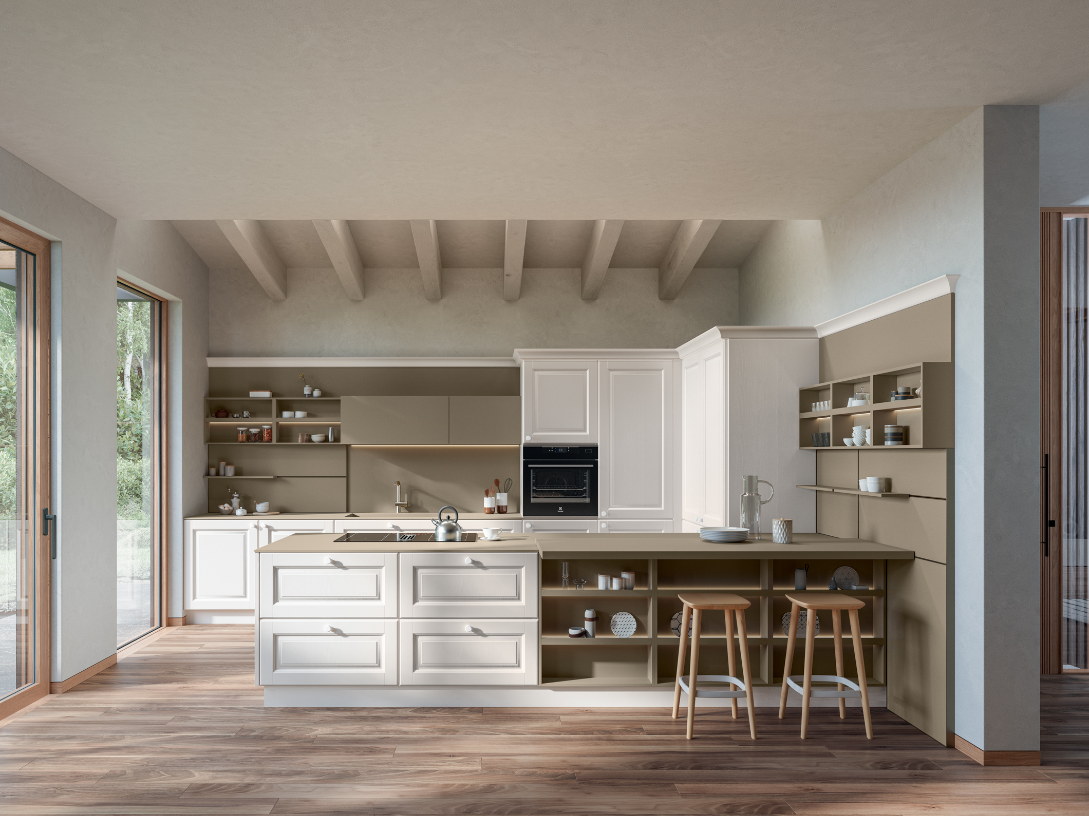 Cucina Memory Veneta Cucine . Memory appartiene alla collezione cucine classiche , progetti che evidenziano la bellezza senza tempo, questo è il risultato di processi di lavorazione che tramandano ancora l’artigianalità e i valori del lavoro manuale, inoltre l’espressione della creatività e dell’esperienza. Cucina Memory Time è lo stile come valore da riscoprire. il gusto per chi vuole soluzioni di cucina con un gusto tradizionale senza rinunciare alla modernità delle funzioni. Caratterizza l’insieme l’anta a telaio con pannello bugnato.