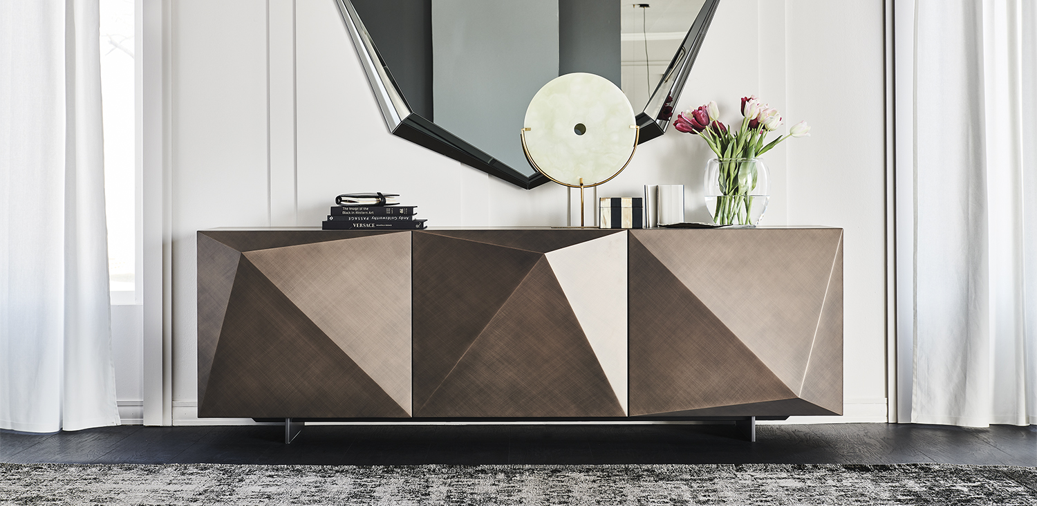 Madia Kayak Cattelan Italia . La madia Kayak di Cattelan rimane sempre un elemento di design senza tempo , le ante diamantate in finitura laccato rendono la madia Kayak molto elegante , disponibile in due misure .