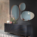 Specchio Lumière Riflessi . Lo Specchio Lumière è caratterizzato da una con cornice in metallo verniciato che crea un effetto tridimensionale . Inoltre lo specchio può essere in cristallo specchiante e a richiesta in cristallo specchiante bronzato.