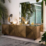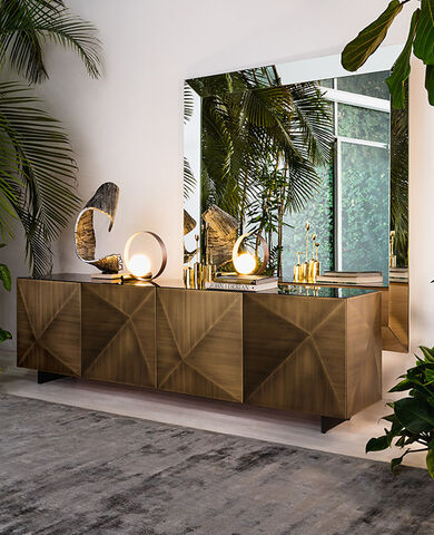 La cornice dello specchio Trapezio è disponibile in finitura specchiante e finitura specchicante bronzata . Inoltre c’è anche la possibilità dello specchio nella versione bicolore con cornice specchiante bronzata e interno specchiante. Diverse misure disponibili .