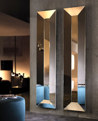 Specchio Trapezio Riflessi caratterizzato dalla cornice specchiante leggermente inclinata , in questo modo si crea un bellissimo gioco di rifrazione dell’immagine che inioltre genera un effetto di tridimensionalità davvero particolare . Ogni parte dello specchio Trapezio ottiene la porzione d’immagine riflessa, ognuna diversa dall’altra, creando quindi apparenti divisioni spaziali e illusioni prospettiche . Ideale per ambienti moderni e eleganti .